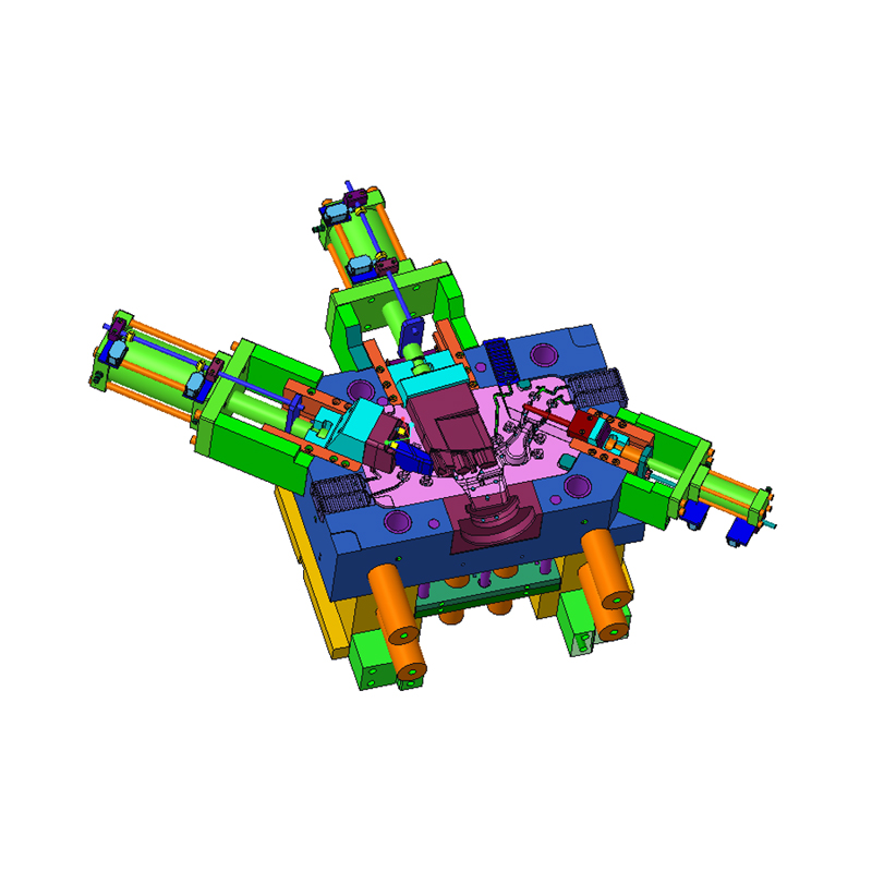 Ang aluminyo haluang metal die-casting support arm mold design ay nakatuon sa mataas na katatagan at mahabang buhay. Ang timbang ng amag ay umabot sa 4665kg, na maaaring epektibong makatiis sa malaking presyon na nabuo sa panahon ng high-pressure casting at matiyak ang pangmatagalang matatag na operasyon sa ilalim ng mataas na temperatura at mataas na presyon ng kapaligiran. Ang matatag na istraktura at matibay na mga materyales ay ginagawang madali ang hulma upang mabigo o magsuot sa panahon ng pangmatagalang paggamit, binabawasan ang dalas ng pagpapanatili at kapalit at pagbabawas ng downtime. Tinitiyak ng disenyo ng high-stability na ang amag